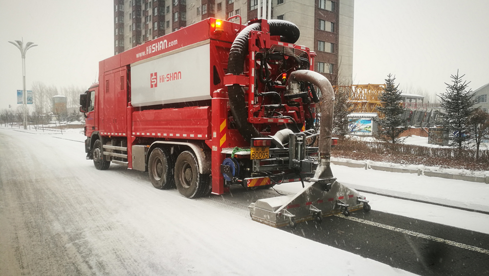 此次海山機械多功能抽吸車“除雪破冰”圓滿成功。