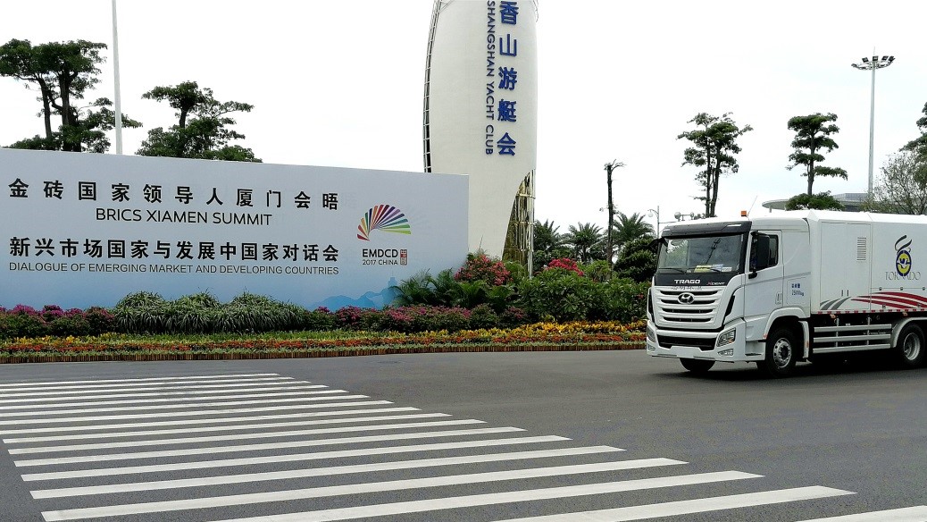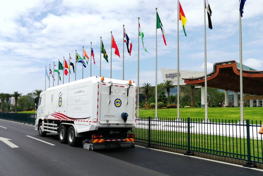 廈門(mén)市環(huán)衛(wèi)為了以最好的城市面貌迎接金磚峰會(huì),從福建海山機(jī)械股份有限公司采購(gòu)了代表當(dāng)今道路深度清潔世界先進(jìn)水平的重器–重型道路污染清除車,以滿足高標(biāo)準(zhǔn)會(huì)場(chǎng)以及核心區(qū)域的地面環(huán)境要求,使廈門(mén)以更加靚麗的姿態(tài)迎接來(lái)自世界各地的金磚貴賓。