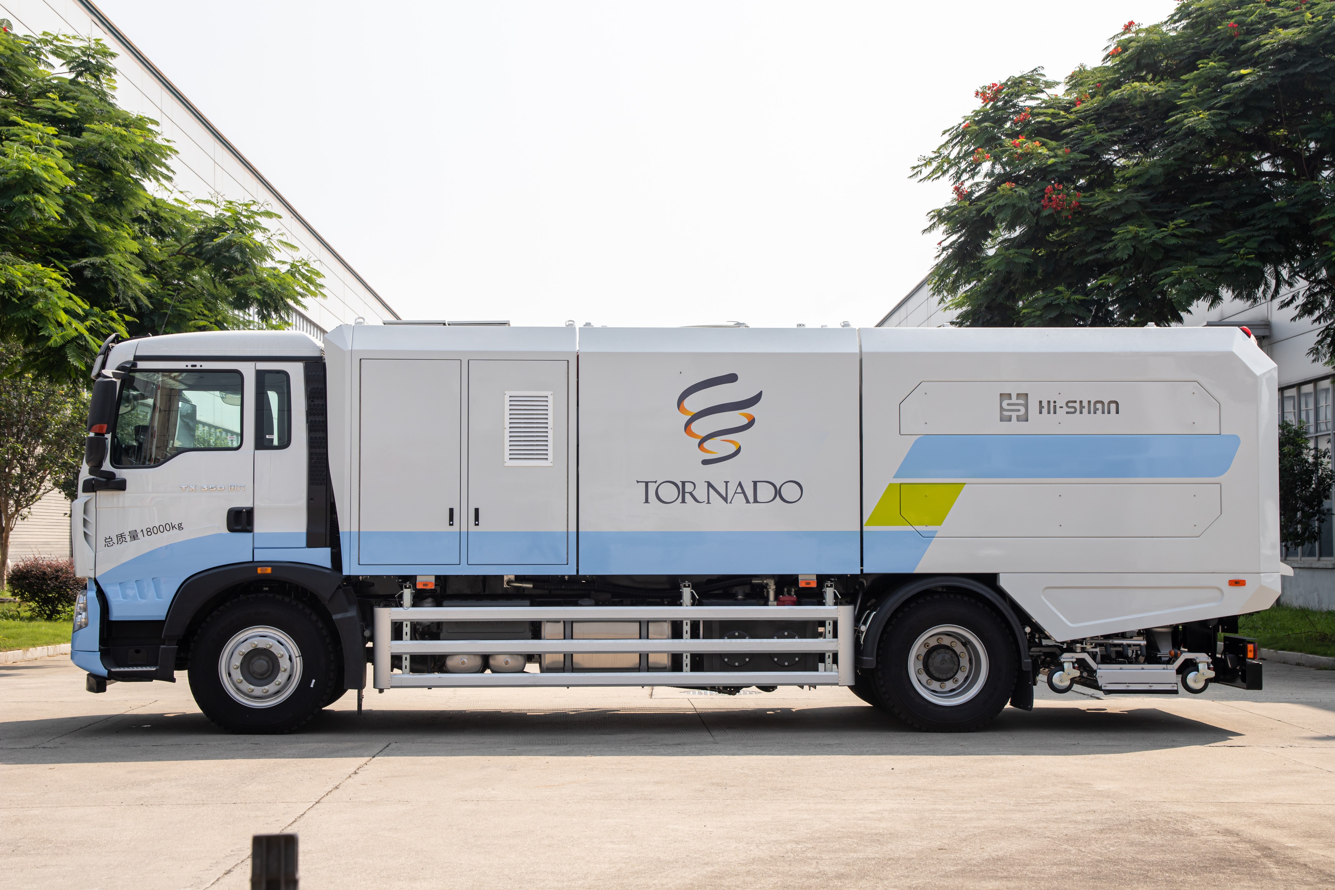 ???????此次博覽會(huì)上,海山推出了8T氫能源道路污染清除車(chē),整車(chē)零排放,配置全面升級(jí),顛覆傳統(tǒng)洗掃模式,更是新能源模式中的創(chuàng)新與突破。