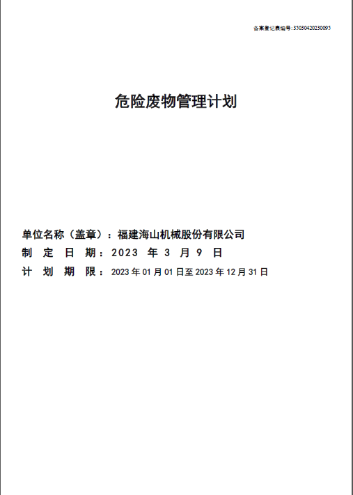 2023年度危險(xiǎn)廢物管理計(jì)劃